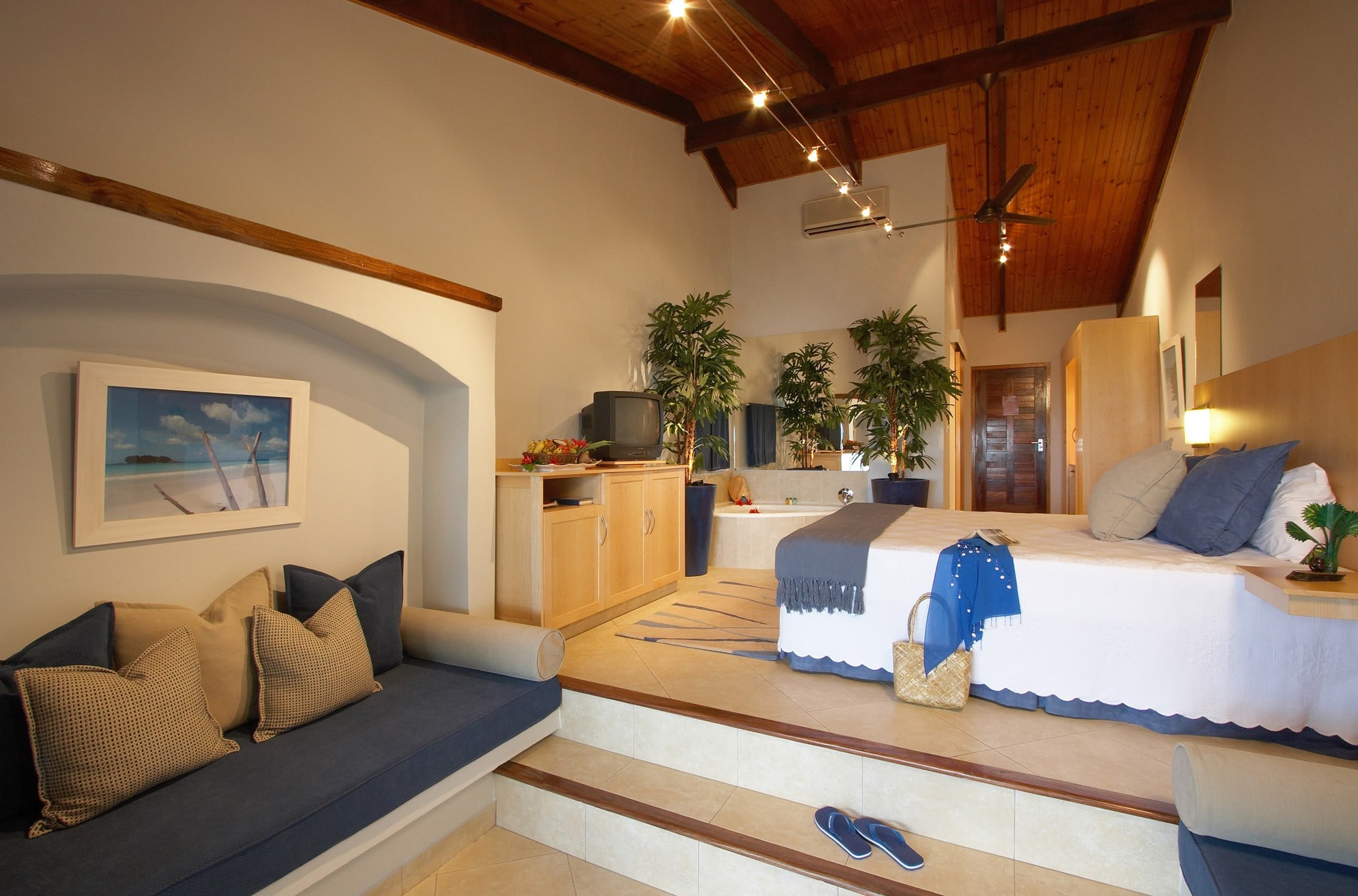 Junior Suites. The 12 spacious, modern and comfortable Junior Suites with an airy tropical feel are situated on a rocky outcrop high above the ocean. All Junior Suites have a king sized bed, a relaxing sitting area and a balcony with stunning sea views. The junior suite wing enjoys its own private pool and is situated separately to the main.