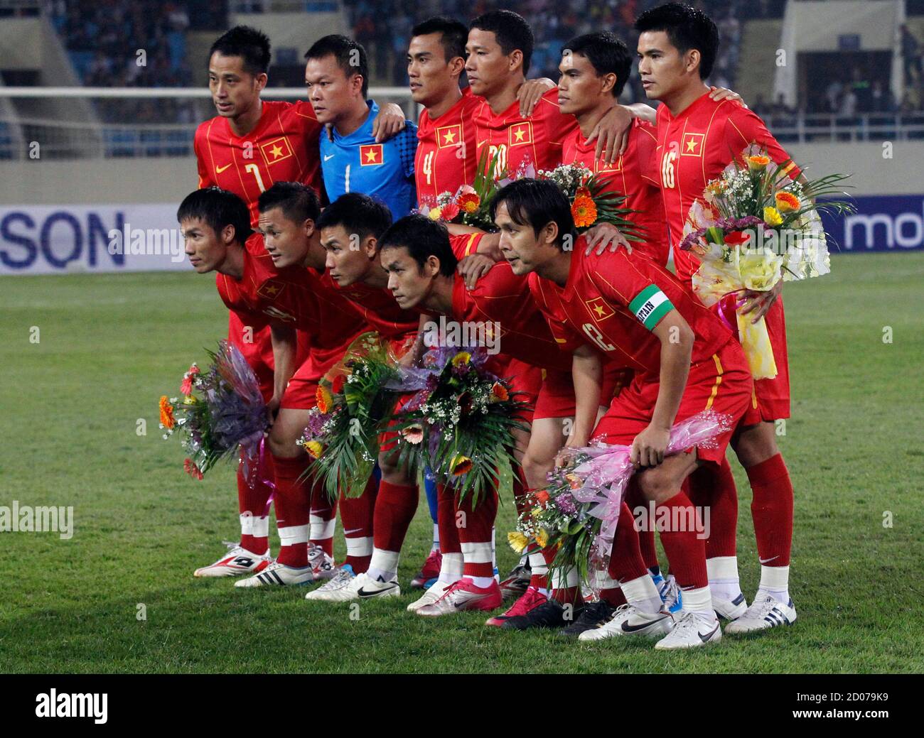 Vietnam's national soccer team pose for a photo before their AFF Suzuki Cup 2010 soccer match