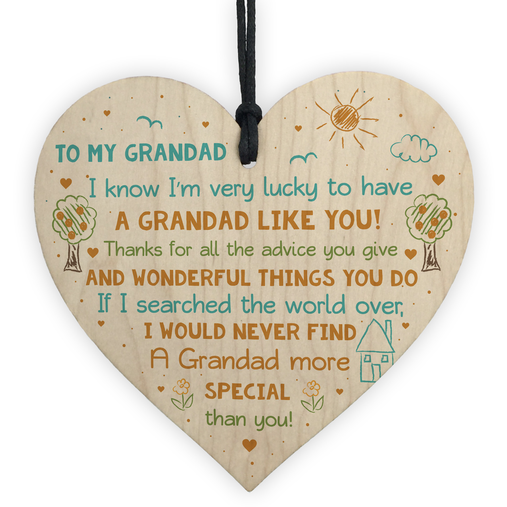 Special Grandad Poem Wood Heart Grandad Birthday Christmas Gift